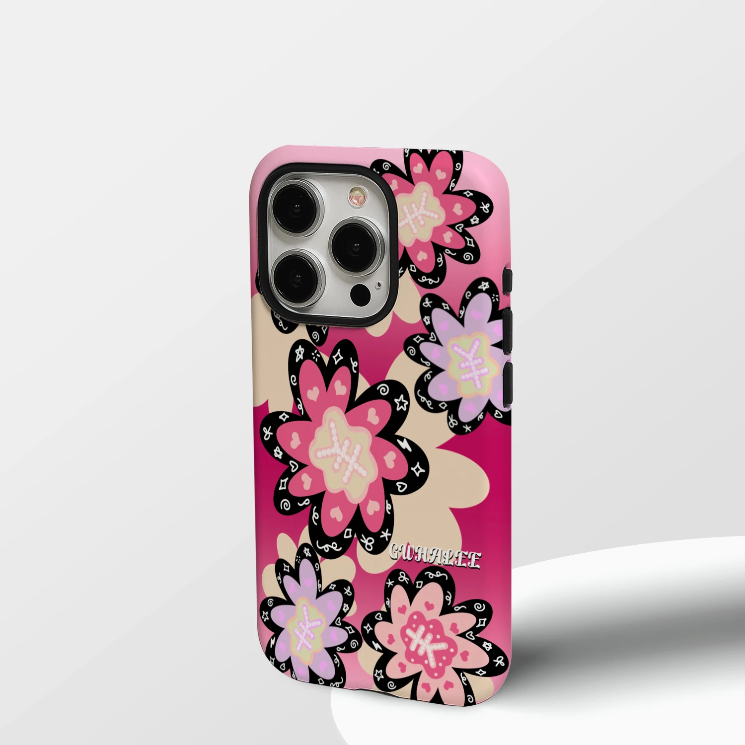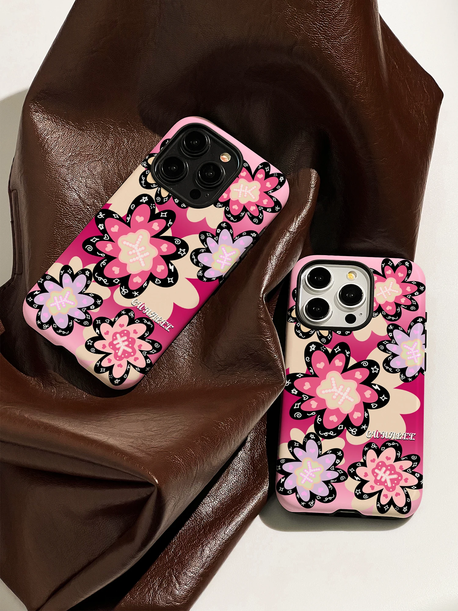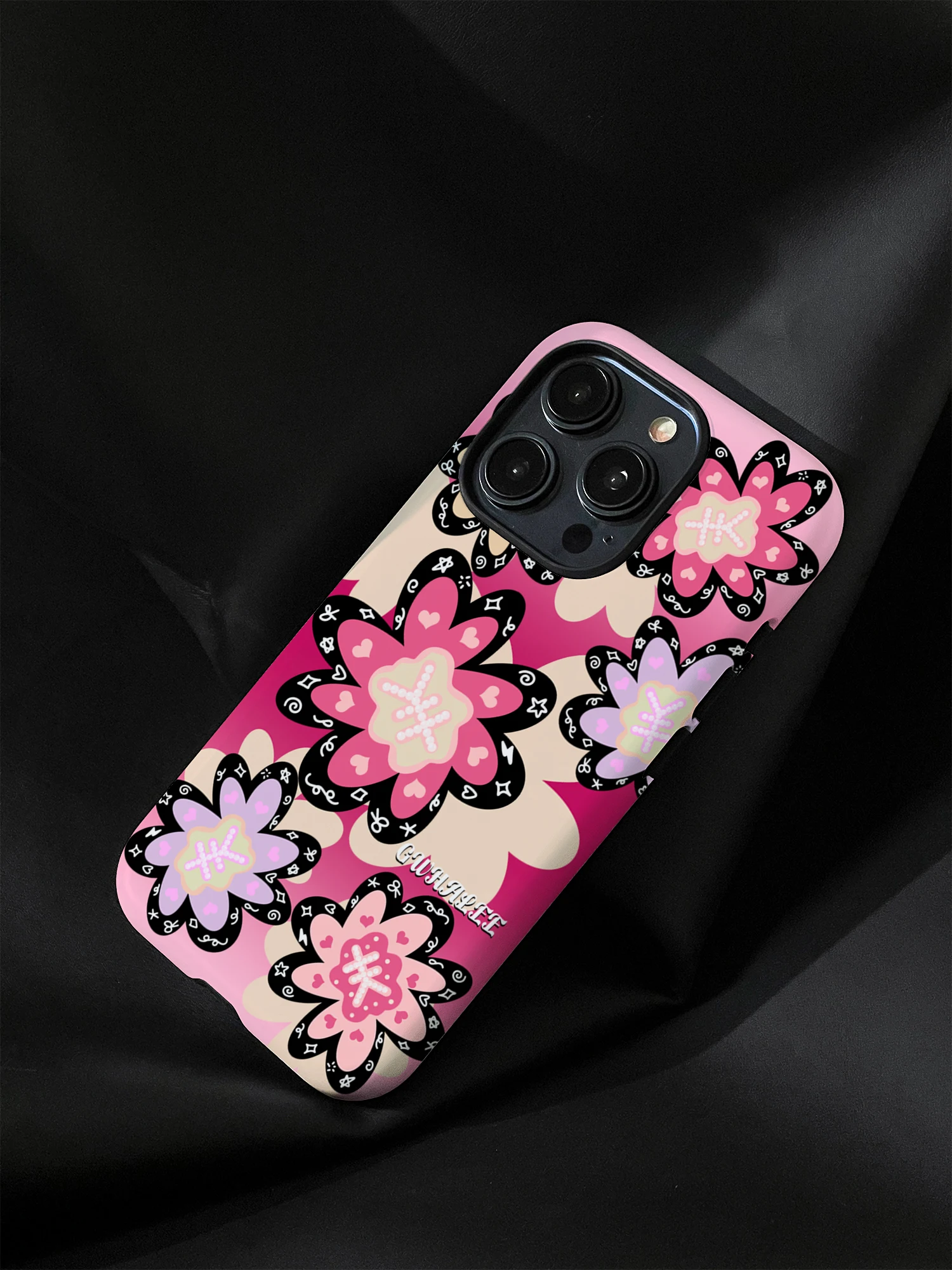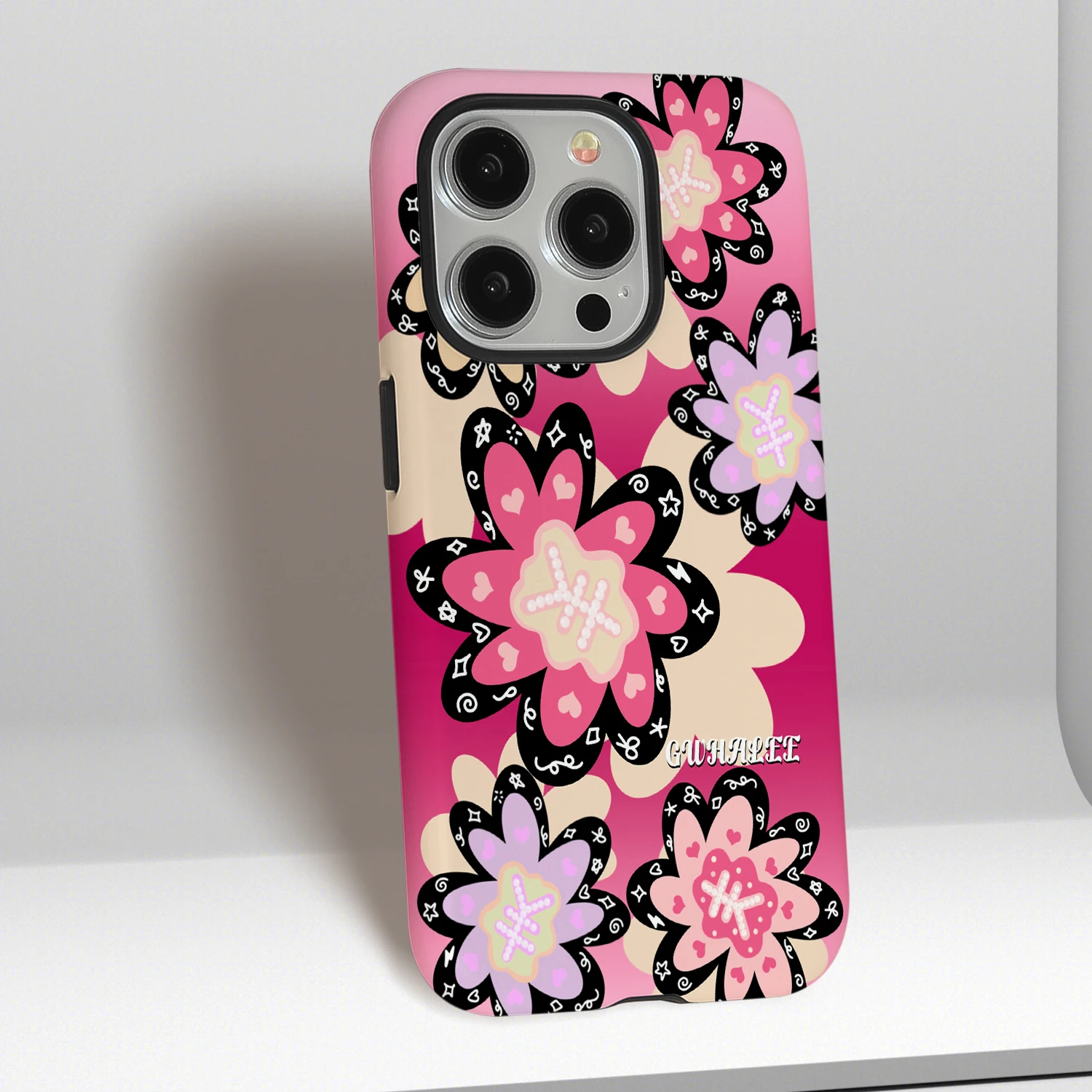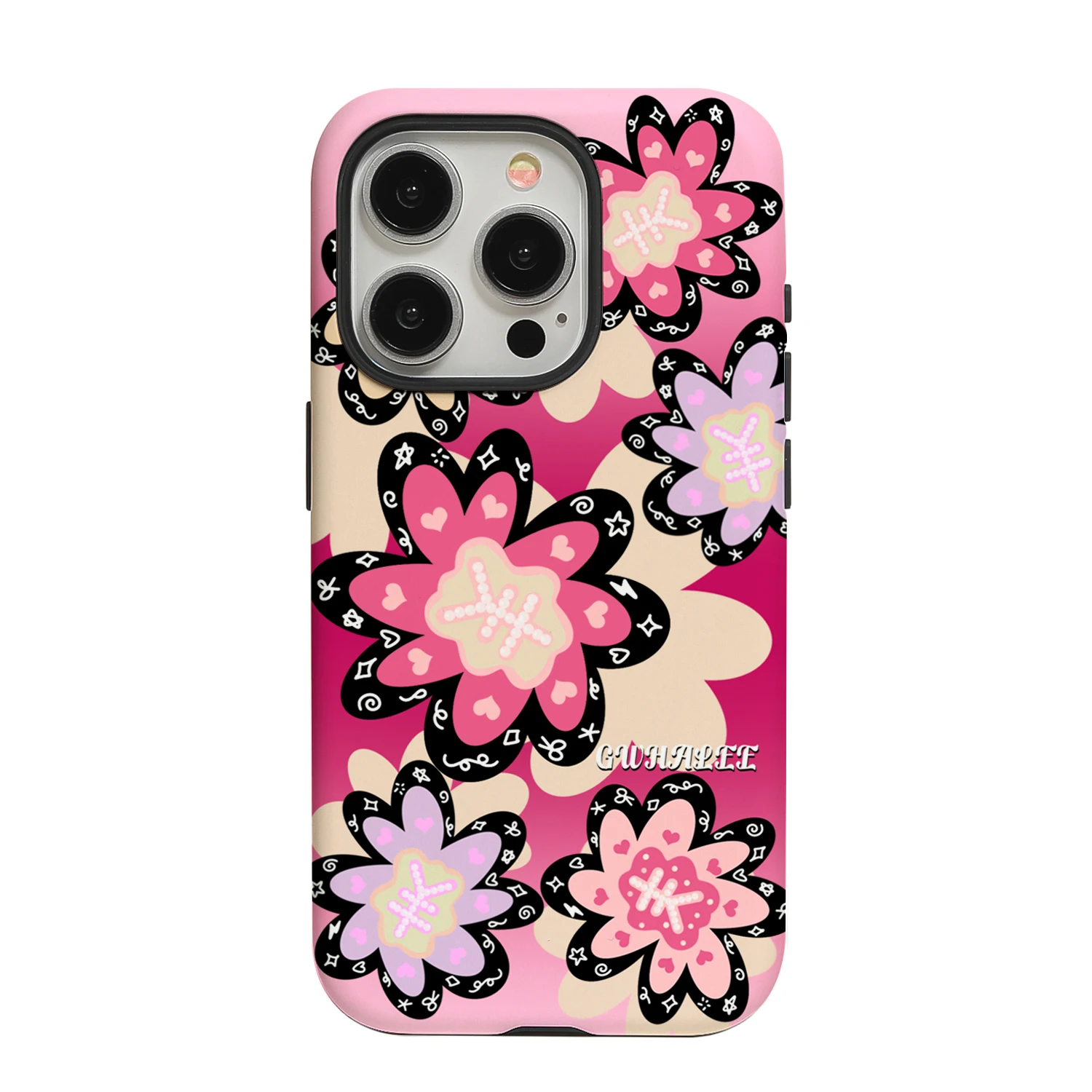 Flower iPhone 15 Promax Filing Round Edge Matte 2-in-1 Phone Case, Small and Cute Personalized Creative Fall Protection Case