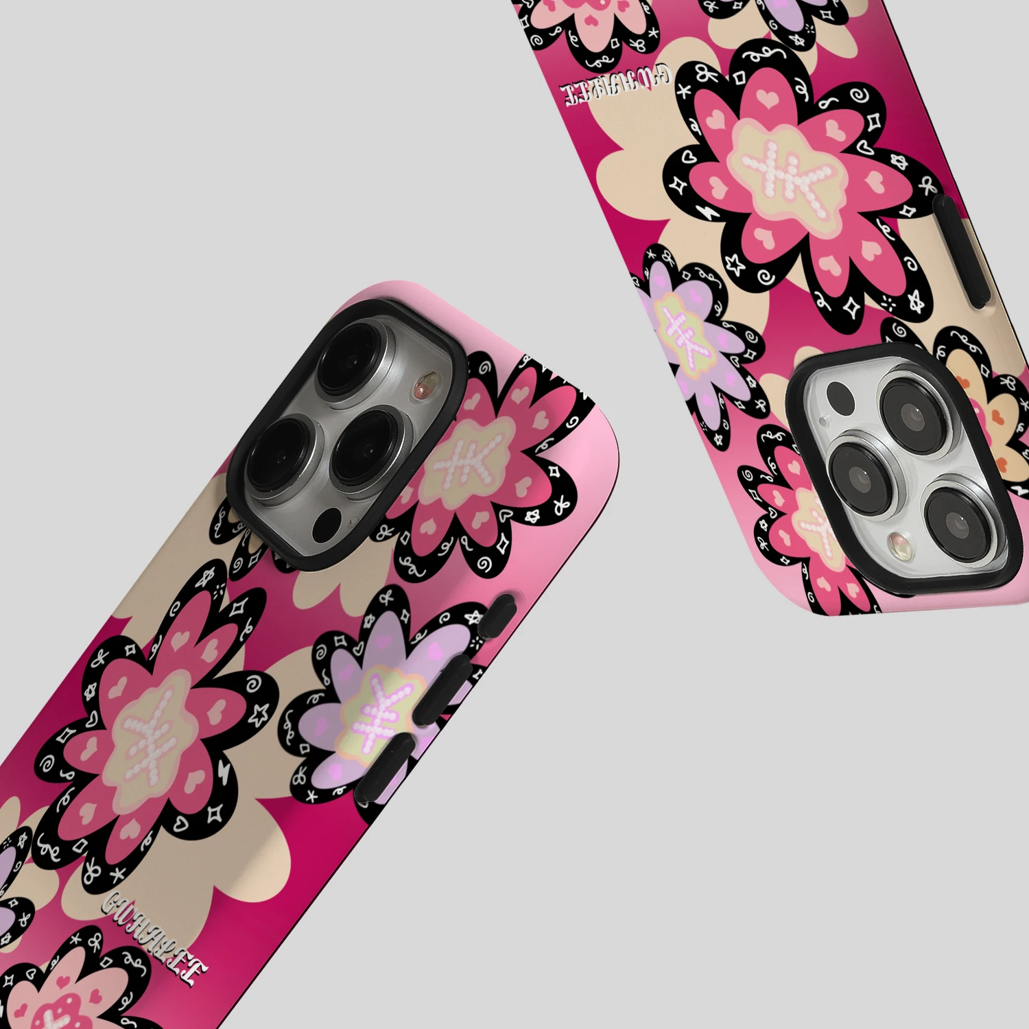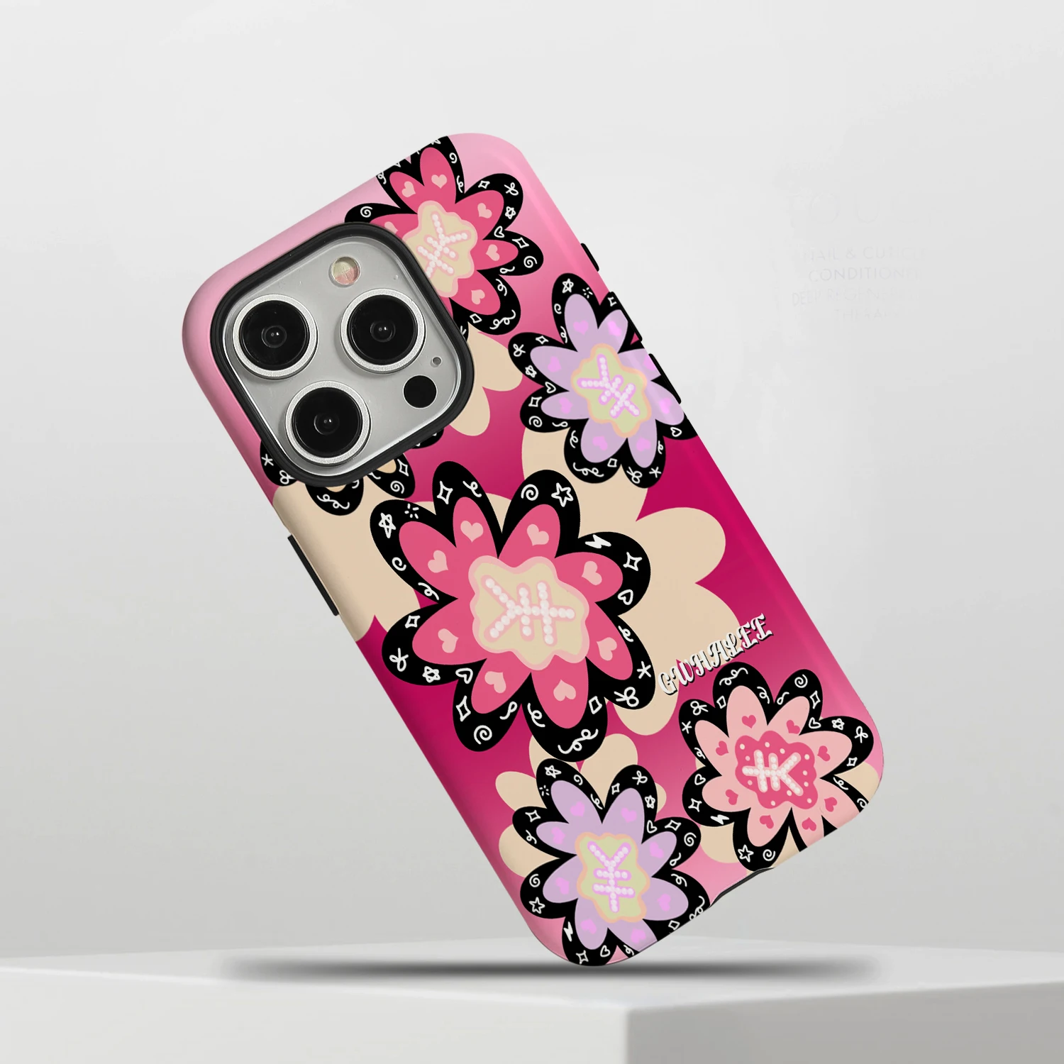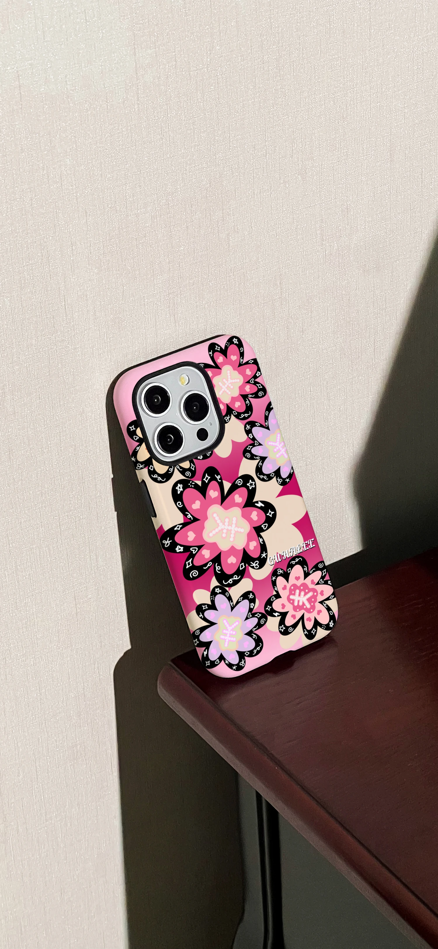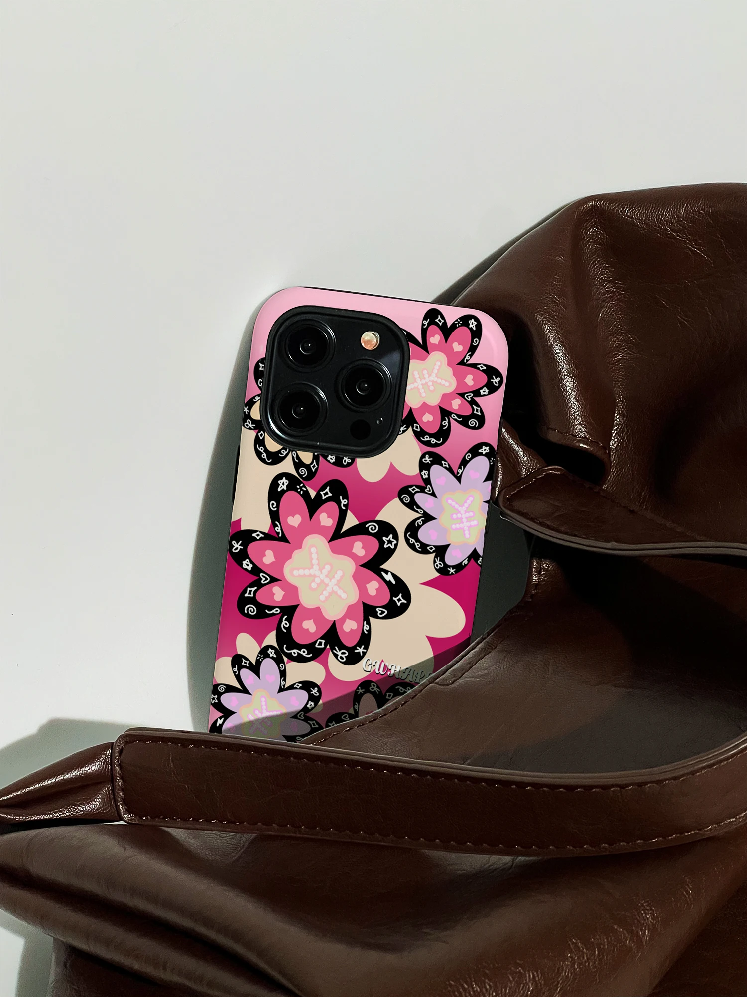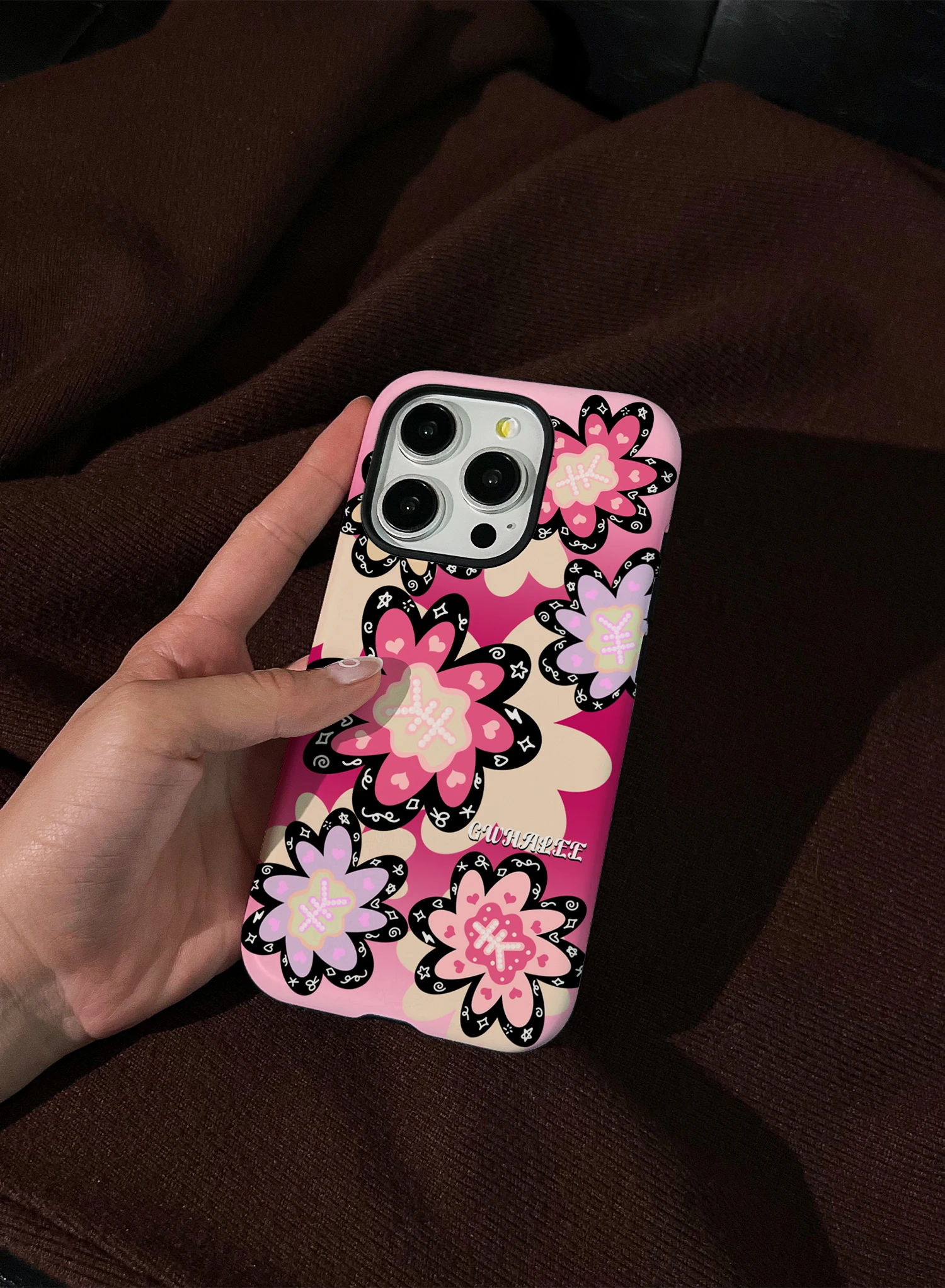 Flower iPhone 15 Promax Filing Round Edge Matte 2-in-1 Phone Case, Small and Cute Personalized Creative Fall Protection Case